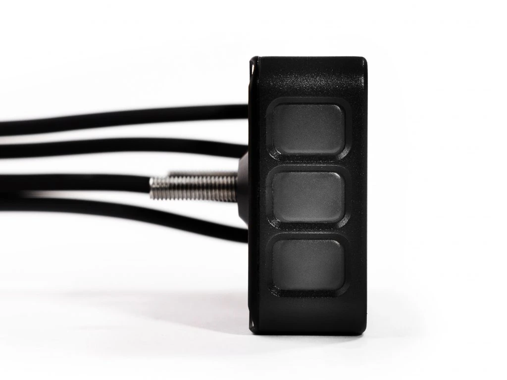 Des boutons intégrés de chaque côté permettent de contrôler le Rally Master SG quel que soit son emplacement. La disposition à trois boutons de chaque côté imite les télécommandes standard, ce qui la rend facile à utiliser même avec plusieurs TripMaster à proximité. Le bouton central permet de changer de mode d’un simple geste, tandis que les boutons haut et bas ajustent le déplacement et d’autres fonctions.