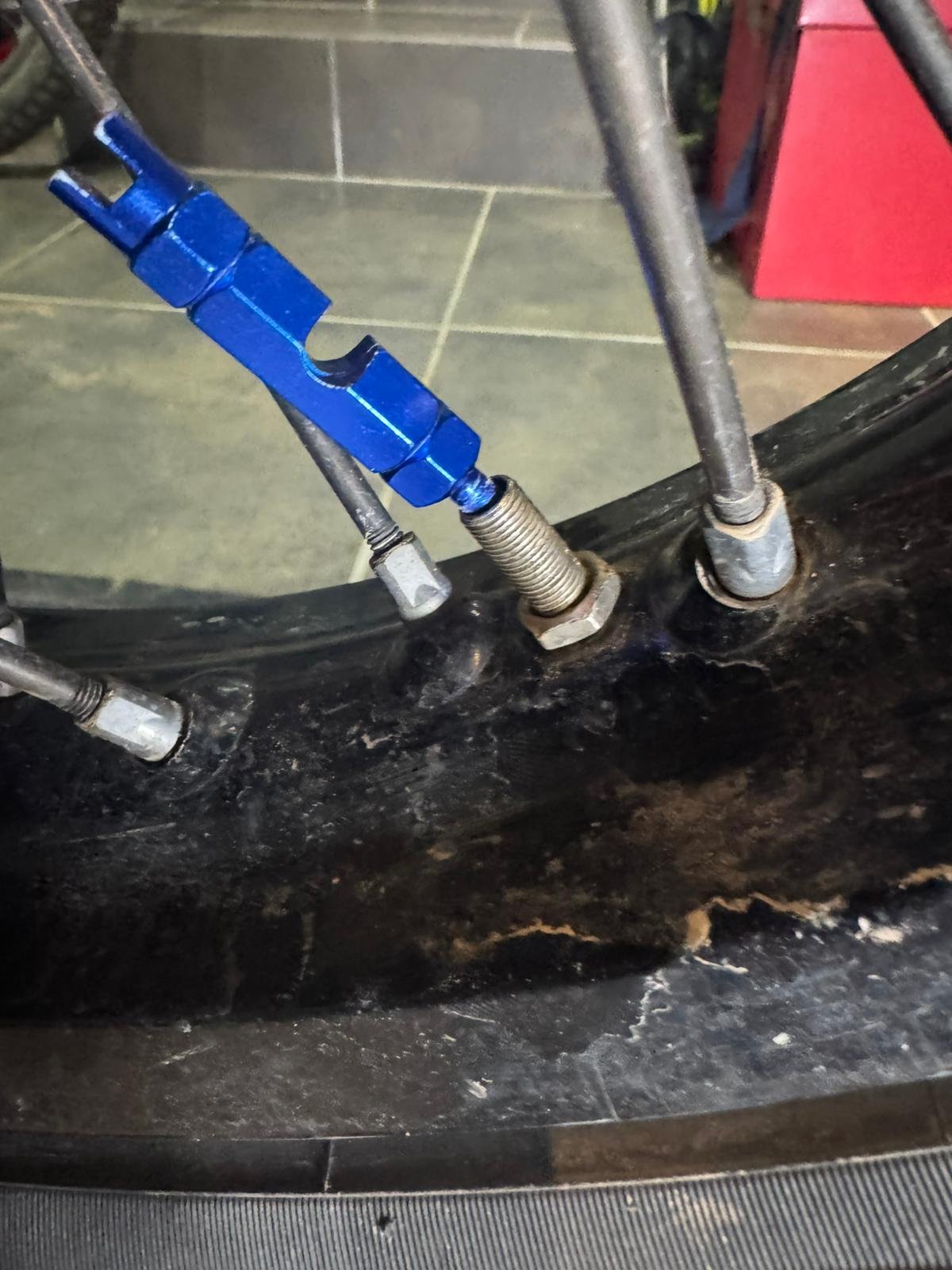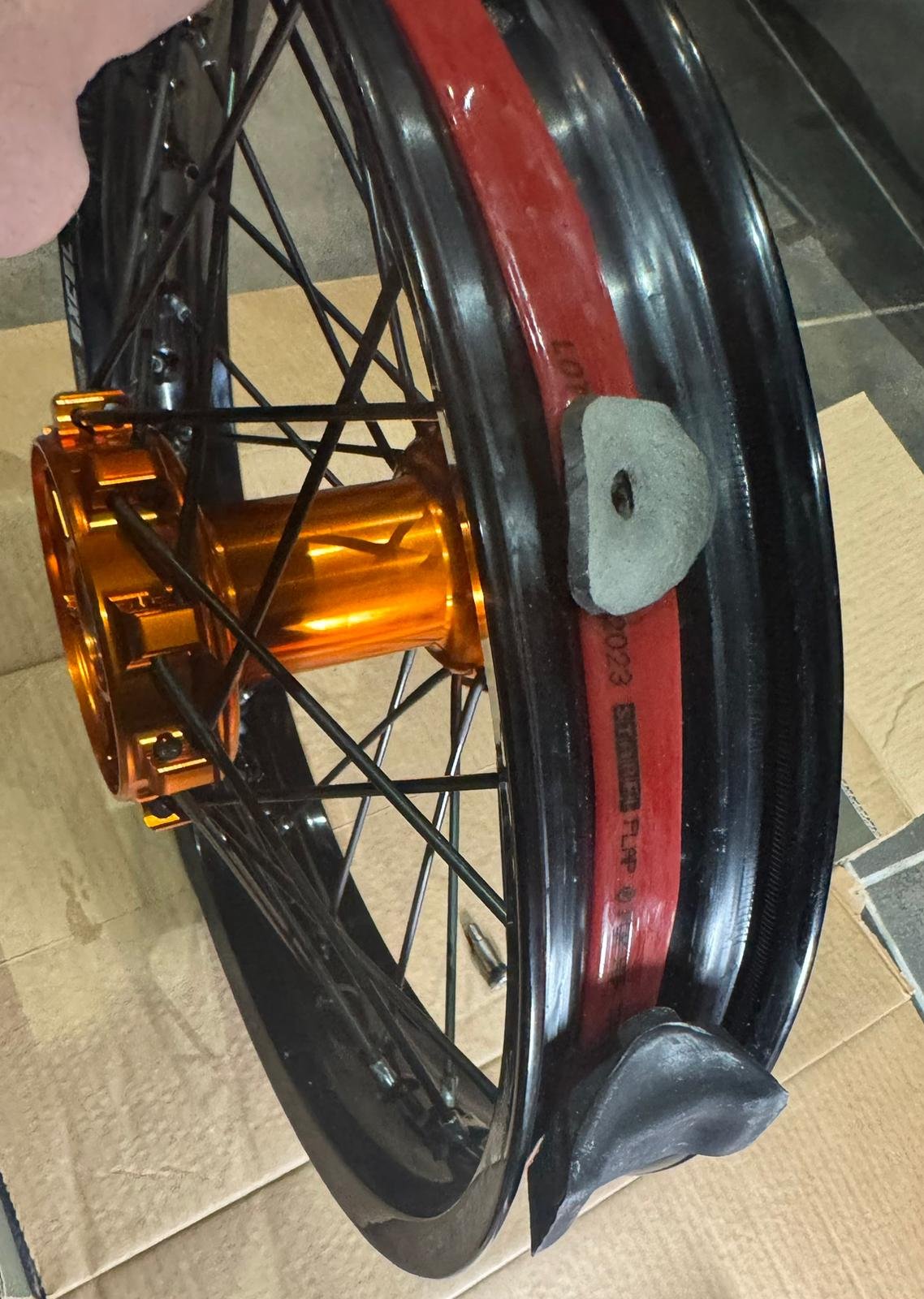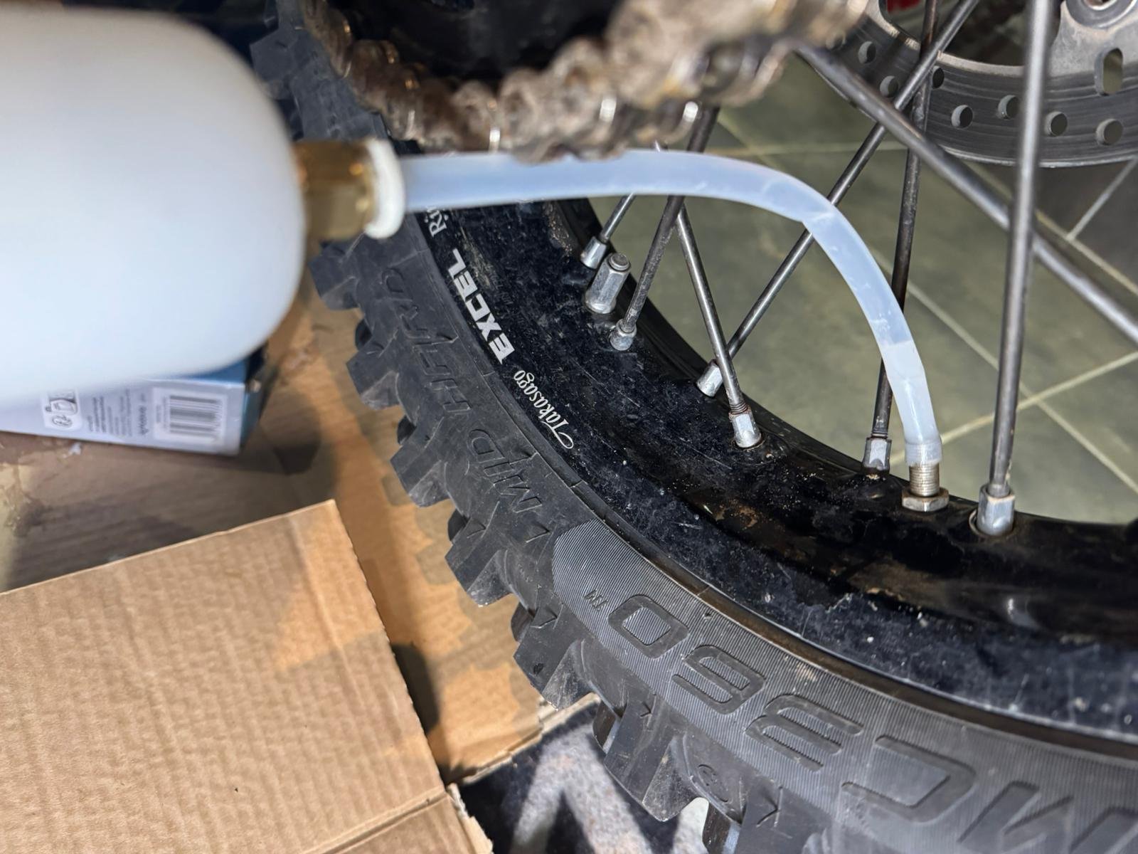 jantes origine souvent en M10, jantes renforcées en M8) - Valve découpée dans une vieille chambre à air